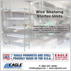 Eagle Group wire shelving has a Patented QuadTruss® design, with mat wires welded to a four-truss assembly on front and back, and a three-truss assembly on each end. Below are just a few reasons why Eagle Group wire shelving is the way to go: